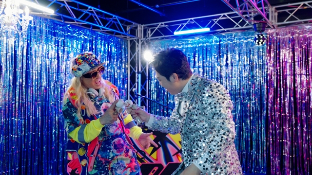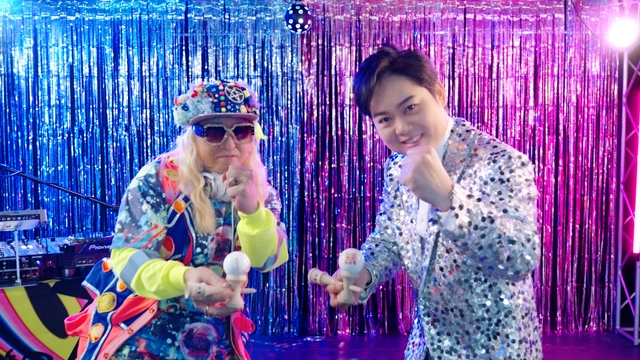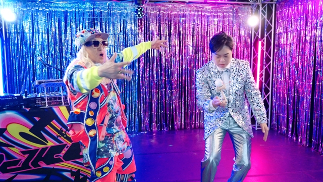 映像は、ディスコ調な背景をバックに、ド派手な衣装で決めた2人がパフォーマンスを展開。この曲のために作られた互いのアーティストロゴが入ったオリジナルけん玉で、2人がけん玉を実演する場面は見どころのひとつで、そのなかでも三山が“もしかめ”“うぐいす”“大皿”“ふりけん”“三山スペシャル”などの大技を決めるシーンは必見です。