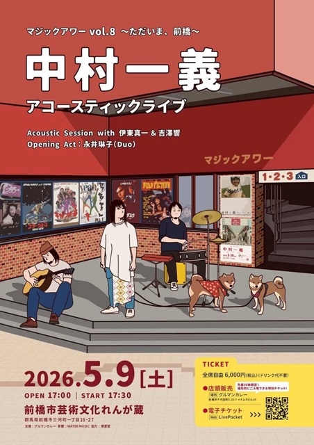 〈マジックアワー vol.8〉は、前橋のグルマンカレー店主・近藤康裕が主催するイベント。偶然の出会いをきっかけとして、2025年5月に開催された同地でのトーク&アコースティックライヴから約1年。「また前橋に来てくれるかな?」という、ライヴ終盤の問いかけに応える形で、再び中村一義が前橋のステージに帰ってきます。