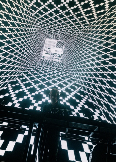 最初に演奏されたのは「Replica」。あのメランコリックなピアノの一節が鳴った瞬間、フロアから歓声が上がる。しかしそのピアノはチョップされ新たなグルーヴを生み出し、2026年バージョンとしてよりアグレッシブに甦っていた。続く「Where Does Time Go」では、ジャーマン・プログレを想起させるキーボードが、部屋の奥へと吸い込まれていく映像とともに催眠的な空間を立ち上げる。ロパティンが映画のスコアワークで見せるタンジェリン・ドリームに通じるシンセワーク、あるいはヤン・ハマーを彷彿とさせる80'sな音響美の源泉が、まさにここにあることを再認識させられた。