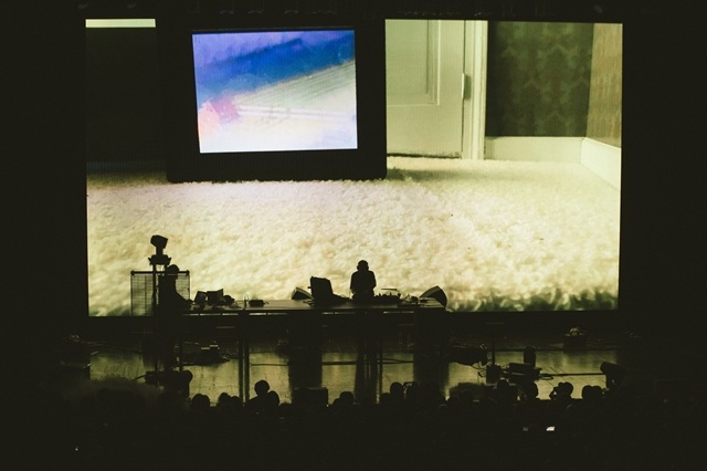 フリーカ・テットのビジュアルは、ステージ上にジオラマを設置する点は前回のツアーと変わらないものの、今回はステージ後方の大スクリーンとステージ上の正方形スクリーン、そしてカーペットが敷き詰められたジオラマの部屋の中にもモニターとスクリーンが据えられ、複数の窓が入れ子状に連動し、互いを映し合いながら変化していく構造を全面に押し出すスタイルをさらに推し進めていた。楽曲に合わせてフリーカ・テットはそこにスモークを注入したり、ドアの隙間からこぼれる光を演出したり、細やかな変化を加えていく。主観と客観、没入と俯瞰を絶え間なく往復する、中毒性の高いビジュアル体験だった。後半にわずかだけロパティンを模した人形も登場するのだが、それがミニチュアのステージ上で倒れていただけ(?)、というのもなんとも彼ららしいユーモアでもあった。