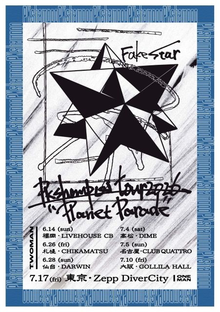 そして、その新作を提げた全国ツアー〈PK shampoo tour 2026 -Planet Parade-〉の開催も発表。6月14日(日)福岡LIVEHOUSE CBを皮切りに全国7都市を回る今ツアーでは、6公演はゲストを迎えたツーマン・ライヴ、ファイナルとなる東京公演は自身初のZepp DiverCityにてワンマン・ライヴとなります。チケットはファンクラブ先行および第1次オフィシャル先行が開始しています。詳細はオフィシャル・サイトをご確認ください。