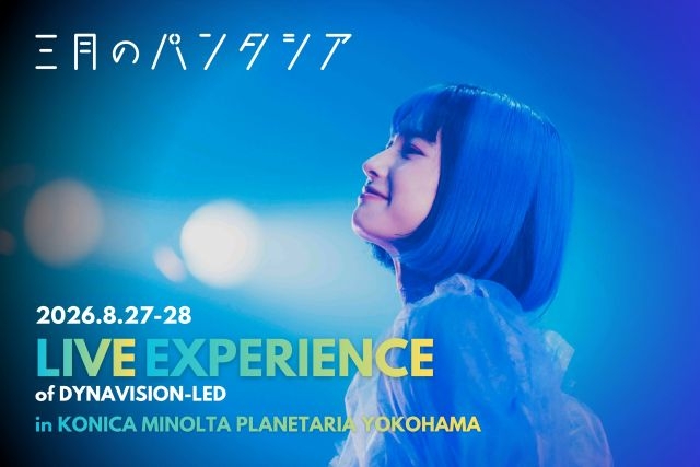 さらに三月のパンタシアは、8月27日(木)、28日(金)にコニカミノルタプラネタリアYOKOHAMAにて初のプラネタリウム・ライヴ〈三月のパンタシア:LIVE EXPERIENCE of DYNAVISION-LED〉の開催を発表。みあが紡ぐ繊細な歌詞や楽曲の世界を、DYNAVISION-LEDを用いた圧倒的な迫力の全天周映像と音響で具現化する、スペシャルな没入型ライヴ体験となっています。チケットは、4月18日(土)10:00よりFC会員限定先行がスタートします。