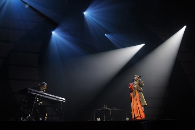 本編ラストに用意されていたのは、そんな鞘師の新しいチャレンジともいえる、ピアノと鞘師のボーカルをフィーチャーしたパフォーマンス。本ツアーでピアノアレンジを手掛けたピアニストの鈴木瑛子をゲストとして呼び込むと、鞘師はダンスを封印し、自身の歌声だけを使った表現に挑む。ステージ下手に設置されたキーボードで鈴木が奏でる流麗なピアノの音色。センターでスポットライトに照らされた鞘師は、客席を端から端まで視線を配りながら、鈴木の音の上に自信の歌声をそっと乗せるように丁寧に歌い始める。そうして披露された「あの日約束したから」と「Winding Road」は、歌声という武器のみを手にした表現者・鞘師里保の生き方や覚悟を体現していたかのよう。歌というものに真正面から対峙し、感情や想いをぶつけるパフォーマンスに、オーディエンスは息を呑む。
