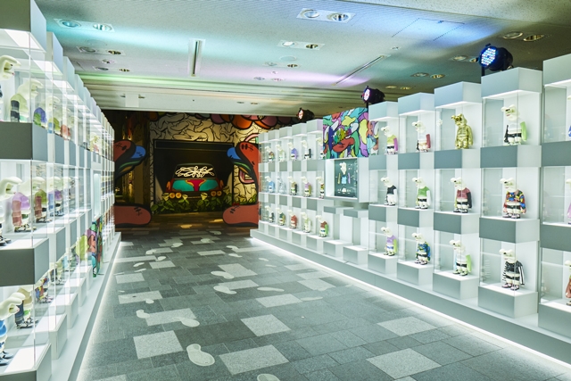 展示は全64体からなる「FiNGA」立体フィギュアの展示からスタートし、ゲートをくぐった先の会場内にはメイン展示の一つとなる等身大の「FiNGA」立体フィギュアとキャンバスが配された「FiNGA HOUSE」が展示。会場内は他にも、フィギュアの原型となるグラフィック作品や、デジタルアートならではの映像作品、オリジナル・スニーカーの創作の日々を追ったドキュメント映像も展示されています。