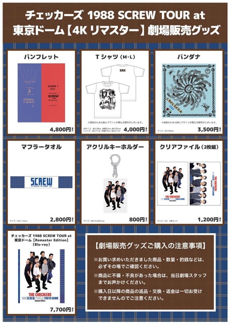 各劇場物販では、当時のSCREW TOUR復刻グッズ等の販売が決定。Tシャツやバンダナなどファンなら手に入れたいアイテムがラインナップされています。