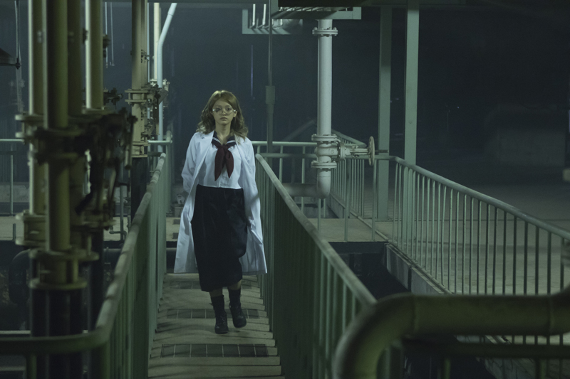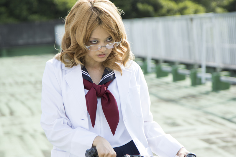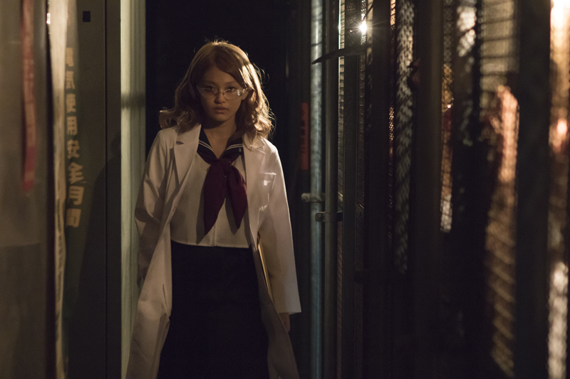 内田理央が演じる“鋸村ギーコ”が自前のチェーンソーでバッタバッタと迫りくる改造人間と戦う痛快アクション・ムービー『血まみれスケバンチェーンソー』(2016年公開)。とある理由でギーコに深い恨みをもつ宿敵、“碧井ネロ”役を、グラビア・アイドルや女優として活躍する