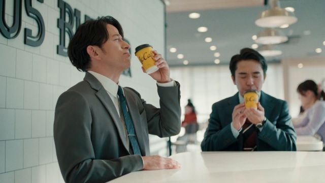 オフィス街を後輩と歩く岡田が、思わず「うわっ寒っ」とひと言。後輩の「どっか入りますか?」という声をきっかけに、「TOKIO」の替え歌に乗せて「♪のみにいこー」とノリノリでマクドナルドへ向かいます。寒い日でも、スキマ時間に立ち寄ってほっと一息つける、リニューアルしたプレミアムローストコーヒーの魅力を描いた新CMとなっています。