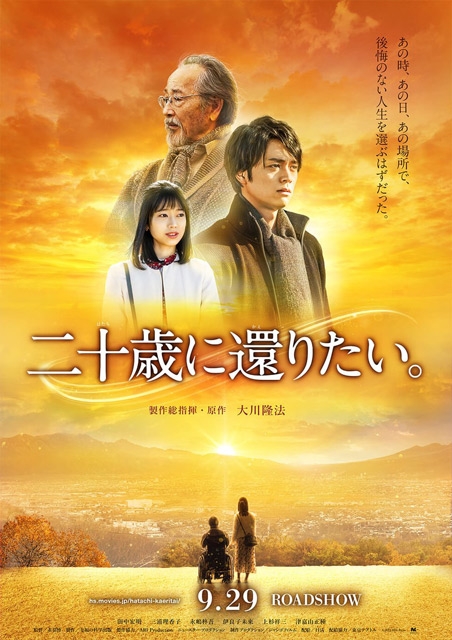 孤独な日々を送る80歳の男が、ある日突然20歳の青年に戻り「第二の人生」を歩み始めるさまが描かれる本作。主人公・寺沢一徳の青年期と老年期を田中宏明津嘉山正種が演じ分け、一徳に寄り添う大学生の明香に三浦理香子が扮しています。監督は『愛国女子─紅武士道』の赤羽博。製作総指揮・原作を大川隆法が担っています。