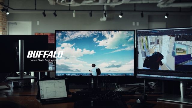 制作の裏側を支えているバッファローの「マウス」と「スマートスイッチ」などをフォーカスし、長時間の作業でもストレスを感じにくい、快適な使い心地を伝える内容となっています。